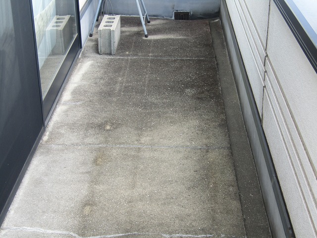 塗装による塗膜防水でもよさそうな箇所なのですが、ひび割れが多く、雨水が入ると困るのでウレタン防水をしています。塗装での防水よりもウレタン防水の方が膜厚があり、耐久性が高いです。