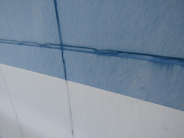 過去に塗装メンテナンスをされているそうで、そのときにシーリングの上に塗装した塗膜が割れていました。塗膜によってシーリングは切れずに保護されていました。