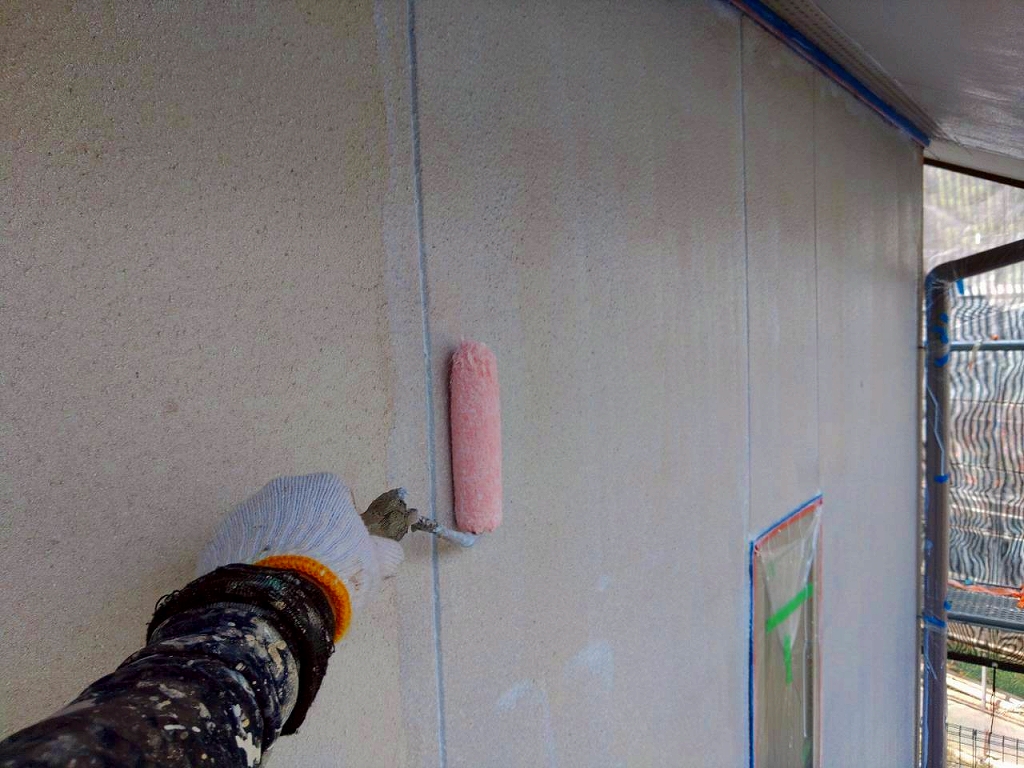 岡山市北区の平屋を塗装 外壁の漆喰が美しい仕上がり 2025.09.17 塗装 目次1 モルタル外壁と旧塗膜の状態2 下塗り:ミラクシーラーエコ3 微弾性サーフの効果4 目地の工夫によるひび割れ防止5 中塗り・上塗り:無機塗料で長寿命仕上げ6 漆喰部分の補修と塗装7 木部の存在感と塗装8 まとめ 岡山市北区で外壁塗装工事をしている現場です。外壁の塗装が終わり、現在は、樋や細部の木部など、外壁以外の付帯部分の塗装を仕上げている段階です。今回の現場は平屋のお住まいで、外壁にはモルタルと玄関まわりに漆喰が使われている、落ち着きのある雰囲気の住宅です。 モルタル外壁と旧塗膜の状態 外壁の大部分はモルタル仕上げとなっており、旧塗膜はリシン吹き付けでした。リシンは細かい骨材を吹き付けた仕上げ材で、独特のザラつきと質感が特徴です。ただし、防水性に乏しく、経年劣化により防水機能が低下すると、外壁材との密着が弱まり、塗膜の剥離や浮きが発生しやすい状態となります。実際に現場を確認すると、リシンの骨材が触れると少しポロポロと落ちやすくなっている箇所もありました。このまま上塗りをしてしまうと、下地ごと剥がれてしまう危険があるため、しっかりと下地処理を行う必要があります。 下塗り:ミラクシーラーエコ まず最初に行ったのは、密着性を高めるための下塗りです。リシン仕上げの外壁には「ミラクシーラーエコ」を使用しました。この材料は、リシンや古い塗膜を固めて骨材のポロポロ落ちを防ぐ効果があります。また、上塗りとの密着を高める役割も果たすため、仕上がりの品質に大きく影響します。 微弾性サーフの効果 次に、下塗りの上に「微弾性フィラー(サーフ)」を塗布しました。微弾性サーフは、モルタル外壁の塗装ではよく使われる材料で、塗膜に弾性があるため外壁の動きや小さなひび割れに追従しやすい特徴があります。モルタルはどうしても割れやすい素材ですが、この微弾性サーフを塗布することで、ひび割れの進行を抑え、雨水の浸入を防ぐことができます。今回の外壁は、築年数のわりに大きなひび割れがなく非常に良い状態で残っていたのが印象的でした。多くのモルタル外壁は窓周りや外壁の角などに多数のクラックが入っていることが多いのですが、この住宅ではそうした劣化がほとんど見られなかったのです。 目地の工夫によるひび割れ防止 その理由を観察すると、設計段階での工夫が大きく関係していると感じました。通常、モルタル外壁は大きな面で仕上げると割れが発生しやすくなります。しかしこちらのお住まいでは、意図的に目地が多めに設けられており、外壁の動きを分散できるようになっていました。特に、窓が横並びに配置された部分では、目地がY字を逆さにしたような形に施工されており、ひび割れが横方向に広がらない工夫がなされていました。これは非常に珍しい施工方法で、職人さんの知恵と工夫が感じられる部分でした。 中塗り・上塗り:無機塗料で長寿命仕上げ 下地をしっかり固めた後は、中塗り・上塗りの工程です。使用した塗料は「無機塗料」。無機塗料は耐候性に優れており、紫外線や雨風による劣化を大幅に抑えることができます。一般的なシリコン塗料と比べても耐久年数が長く、長期的に美観を維持できるのが特徴です。外壁の仕上がりは艶やかで、光が当たると自然な陰影が出てとても美しく仕上がりました。無機塗料特有の上品な質感が、お住まい全体を落ち着いた雰囲気にしてくれています。 倉敷市 外壁は長持ち20年の無機で塗装!色あせしにくい外壁に 漆喰部分の補修と塗装 玄関周りには漆喰仕上げの部分がありました。漆喰は調湿性が高く、美しい白色が特徴ですが、どうしてもひび割れが入りやすい素材です。実際に確認すると細かいひび割れが多く発生していたため、まずはひび割れ補修を行ってから塗装を施しました。補修後に塗装した漆喰部分は、真っ白で清潔感にあふれ、しかも白でありながらどこか透明感のある輝きを放っていました。玄関周りという来客の目に入りやすい部分でもあるため、お客様にとっても非常に満足いただける仕上がりとなったのではないかと思います。 木部の存在感と塗装 この住宅のもう一つの特徴は、木部が多く使われている点です。大きな破風板や鼻隠し、そして軒天の外壁側にある「奥紐(おくひも)」と呼ばれる細い化粧板も木材です。木部は外壁や金属部材と比べるとどうしても劣化が早く、定期的な塗装で保護することが大切になります。軒天は白色で塗装し、その外側に細く入る奥紐部分は木のブラウン系で仕上げました。細い部材ではありますが、ここを丁寧に塗装することで全体のラインが引き締まり、軒天と外壁の境界がとても美しく見えます。破風や鼻隠しも同様に、木の質感を活かしつつしっかりと塗膜で保護しました。木材部分は見た目の印象に大きく関わるため、仕上がりの美しさと耐久性を兼ね備えるように丁寧に作業を進