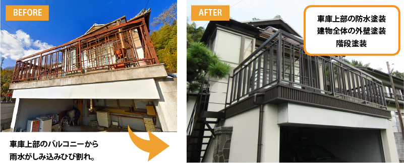 防水工事中はガレージやガレージ上の住宅部分は一時的に使用を制限させていただく場合がございます。スケジュールは事前にご相談させていただきますので、お問い合わせください。