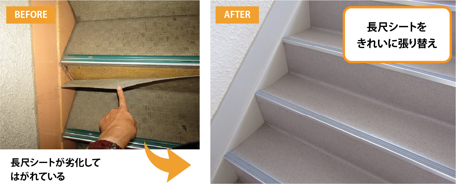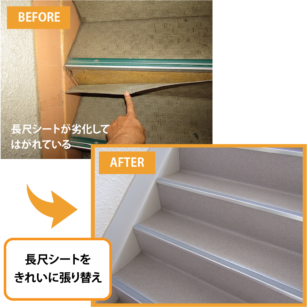 耐久性・意匠性に優れた長尺シートを新規で貼る・張り替え可能です。