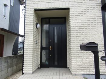 - 玄関ドアも塗装し、まるで新築のようになりました。色のメリハリが美しいです。