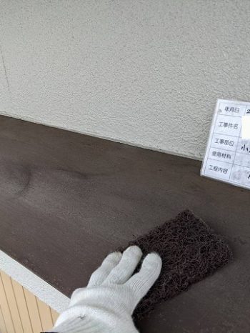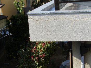 外壁がモルタルですのでどうしてもひび割れは起きてきます。ひび割れを起きにくくするため、塗料を山上げしてから塗装す方法で塗装しました。