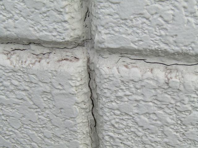 外壁はALCパネルです。小さなひび割れでも雨水が入ると広がりやすく雨漏りしやすいので塗装で防水性を高める必要があります。耐久性の高いフッ素塗料での塗装をご提案いたしました。