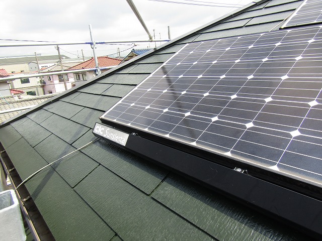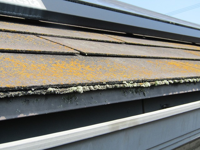 屋根の素材はスレートで、経年劣化による傷みから水分を吸収しやすい状態になっていました。屋根は特に傷みやすいので耐久性の高い無機塗料での塗装をご提案いたしました。