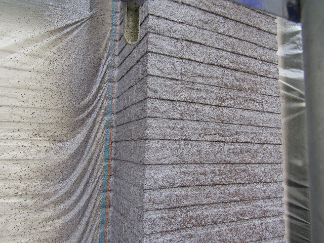 - 外壁の吹き付けをした部分です。カラーチップが石目調模様を美しく表現しています。