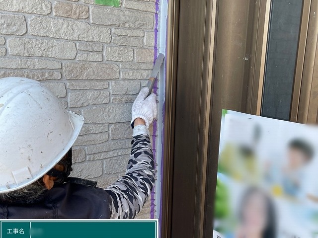 - シーリングを打ち、ならしています。シーリングは打ち替えをしないとサイディングが割れてしまいます。