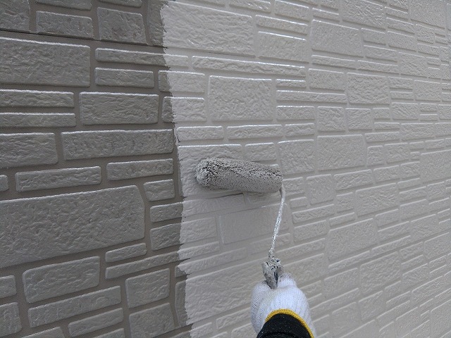 - 塗装の上塗り1回目です。下塗りをし上塗り2回で仕上げていきます。