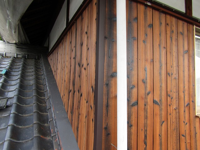 - 2階外壁の焼き板は劣化している部分の交換をします。
