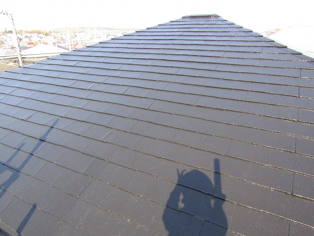 - 屋根の塗装完成です。フッ素塗料で塗装しコケや藻の発生を抑えます。