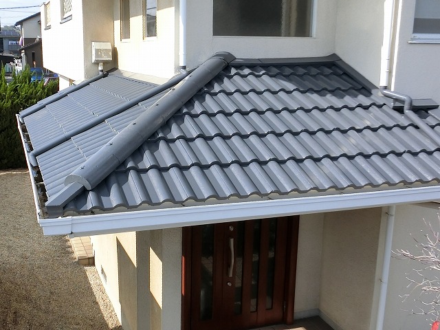 倉敷市 屋根の塗装工事例です セメント瓦をフッ素塗料で