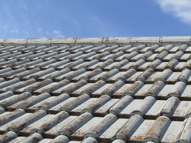- 屋根の塗装前です。色褪せや苔が目立っていました。