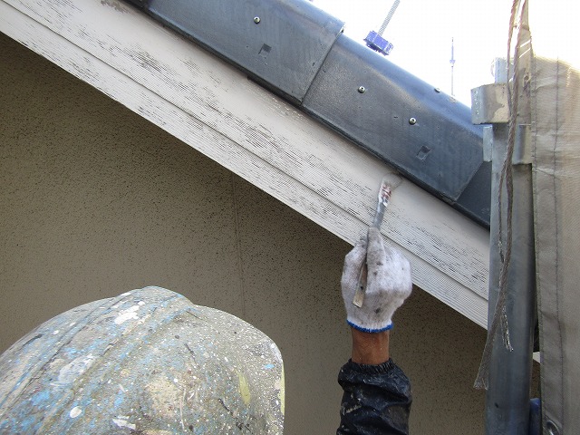 - 破風を塗装しています。破風は雨や風にさらされとても傷みやすい箇所になります。塗膜で基材を保護します。