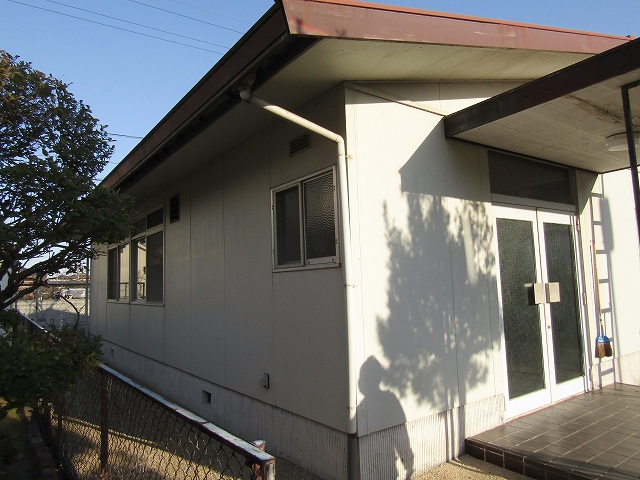 - 施工前の全景です。古い建物ですが、塗装と修繕工事で長く使えるようにメンテナンスしていきます。