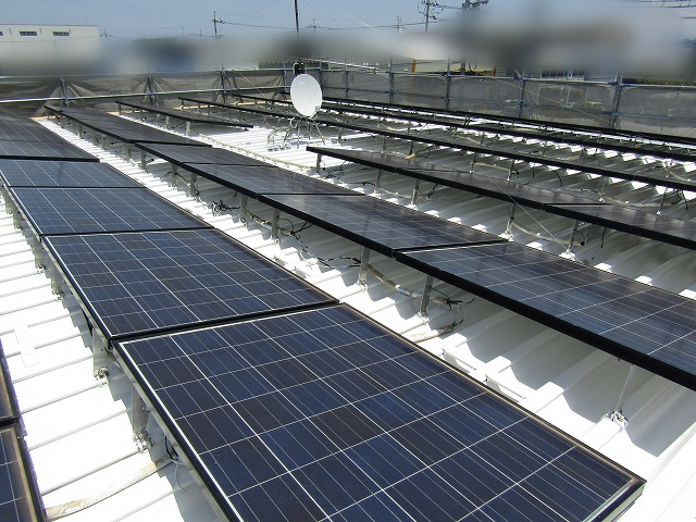 - 屋根の塗装完成です。太陽光パネルの下も塗装し仕上がりにこだわりました。