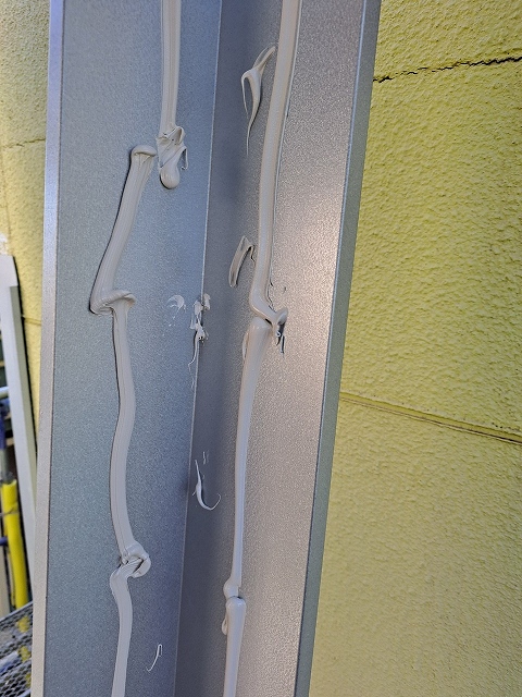 - コーナー用の板金(ガルバリウム鋼板)を貼ります。