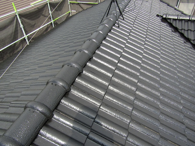 - 屋根の塗装完成です! フッ素塗料でコケが生えにくい屋根になりました。