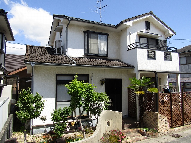 - 施工前の全景です。外壁は汚れや色褪せが目立っていました。