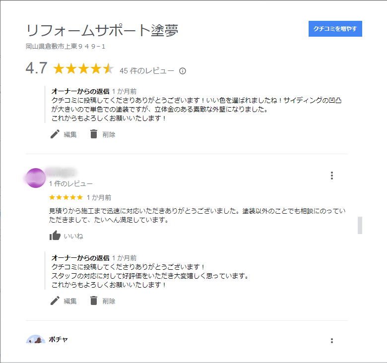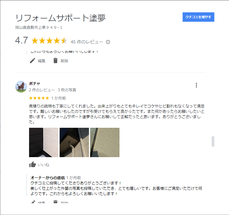 Googleクチコミも投稿してくださいました!ありがとうございます。
