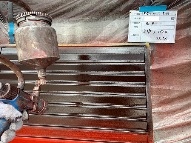 - 雨戸の塗装はムラなく仕上げるため吹き付けで塗装します。