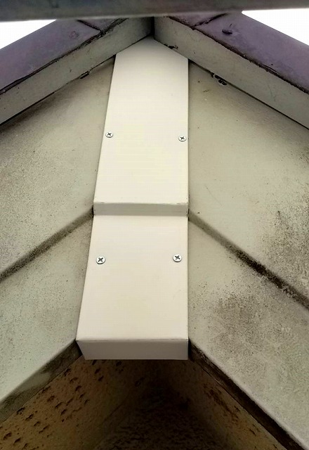 - 破風ジョイントがずれて内側が見えていました。雨漏りしている可能性があり、板金で修繕しました。
