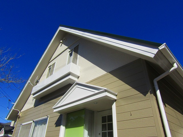 屋根は劣化が進行していました。高耐久の無機塗料をご提案いたしました。外壁は屋根に比べると劣化が進んでいなかったので、シリコン塗料での塗りかえで良いと判断し、アウトレット塗料で費用をおさえるご提案をいたしました。