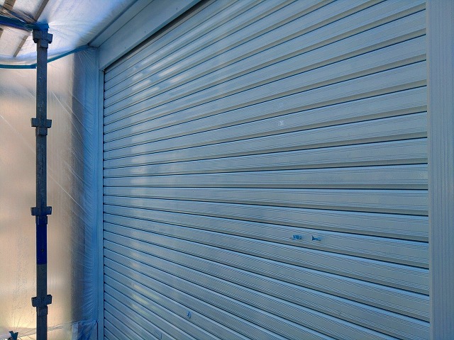 完成しました!外壁の塗装はシャッター回りのみですが、厚膜仕上げで丁寧に仕上げています。