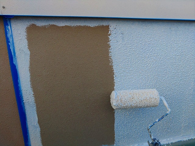 外壁はひび割れが起きない様、下塗りで山上げをして厚みを付ける塗装をします。
