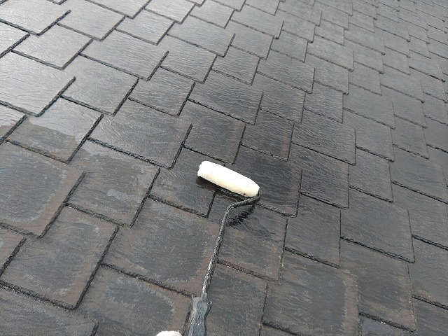 - 屋根は傷みが強かったので、下塗り材はマイルドシーラーEPOを使いました。