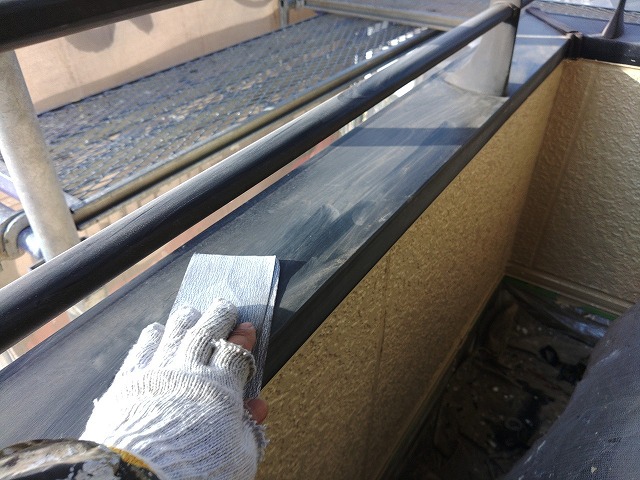 - バルコニーの手すりを塗装する前に塗料を密着させるためにケレンをします。