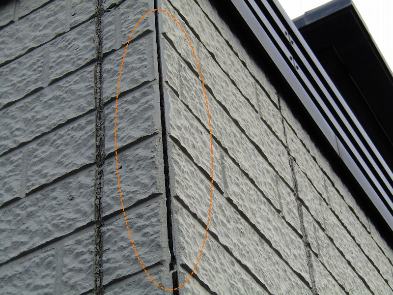 外壁のコーナーは、基材の劣化により開いてしまっていました。角に板金を張るご提案をしました。