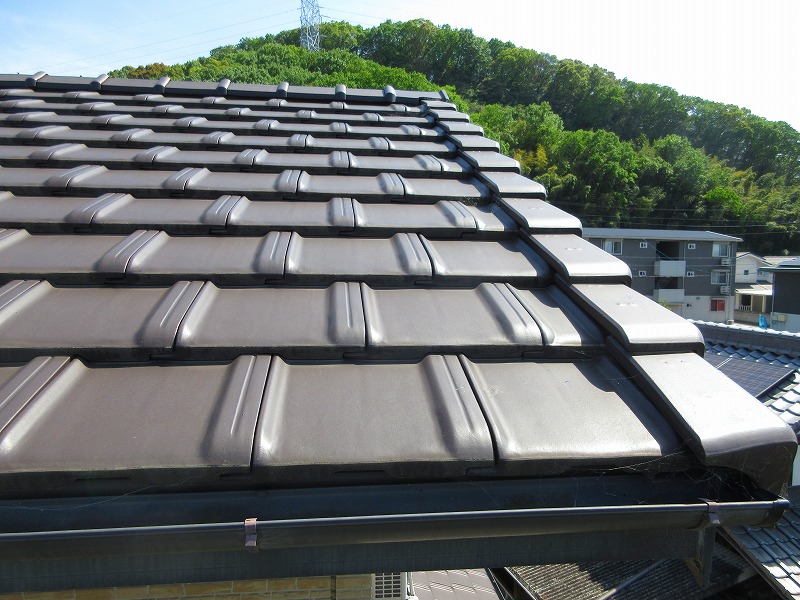 - 屋根は塗装が必要ない陶器瓦です。塗装が必要なくても調査をします。ビスの破損やズレがないかチェックします。