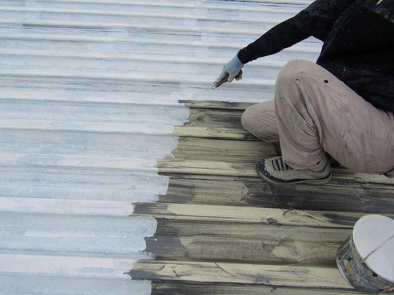 - 屋根は塩ビ鋼板で下塗り材にはビニタイトプライマーを使い密着できるようにします。
