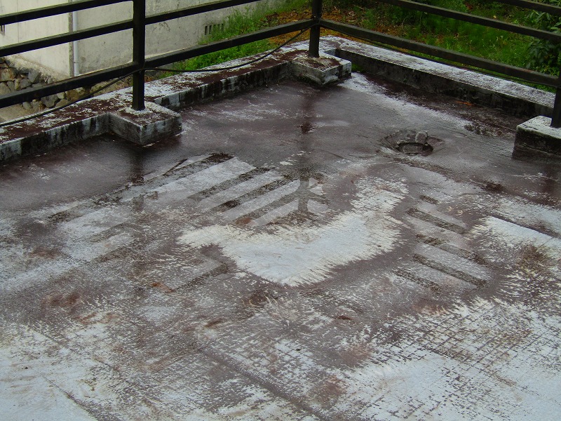 - 既存はウレタン塗膜防水です。劣化が進行しコケが生えている箇所もありました。