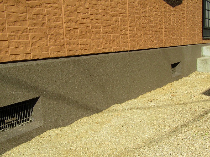 - 外壁も基礎もキレイになりました。基礎は泥ハネが付きにくいセラミガードで塗装しています。