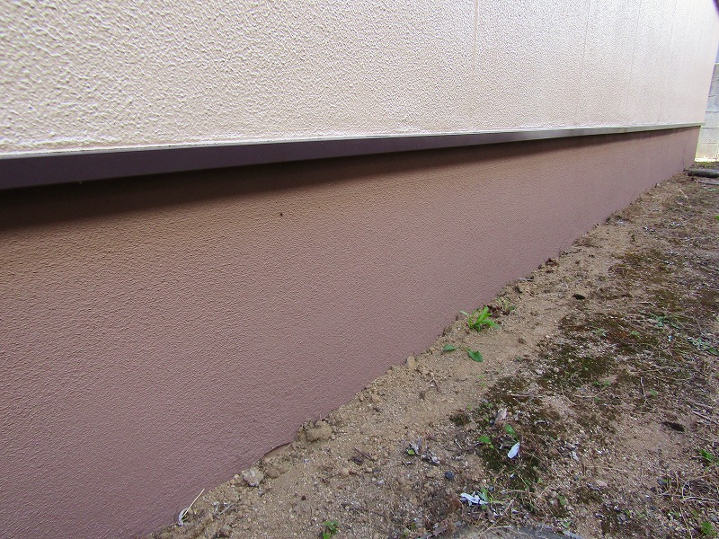 外壁はモルタルで既存の塗装は単層弾性塗料でした。経年劣化によりクラックがいくつかありました。塗装はフッ素塗料と下塗り材のサーフSGを使用し厚膜凹凸仕上げにすることでひび割れしにくくしました。上塗り材のフッ素塗料をアウトレット塗料を使うことで費用を抑えることができました。