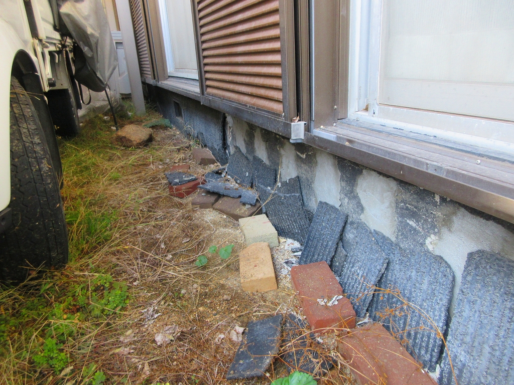- 基礎の塗装は割れてバラバラになっていました。これも雨水や湿気が原因です。