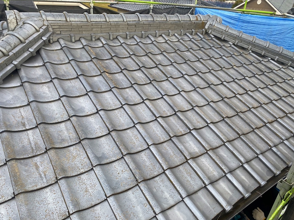 屋根の素材はセメント瓦で塗装が劣化し雨水を吸い込む状態になっていました。