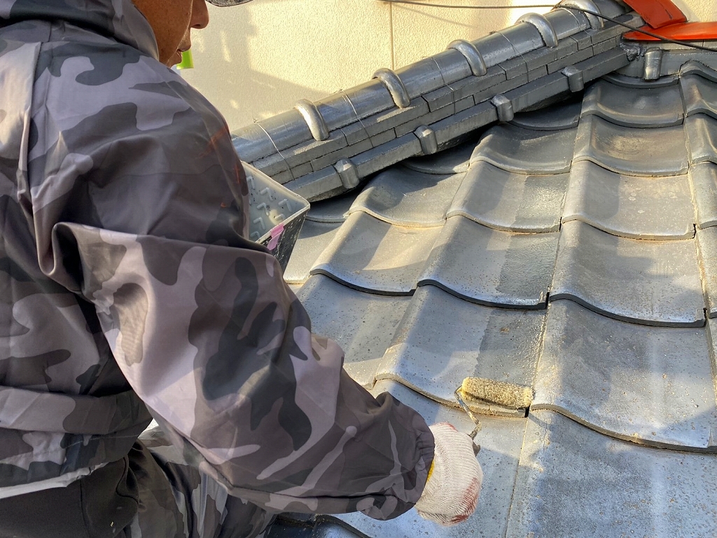 倉敷市 屋根セメント瓦をフッ素塗料で塗装