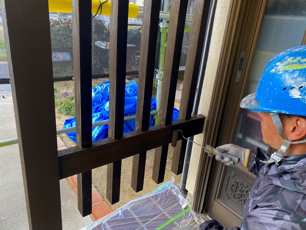 塗装でメンテナンスをします。外壁は塗装をされていてあまり劣化は見当たりませんでした。今回は屋根と劣化している庇のみ塗装をしました。