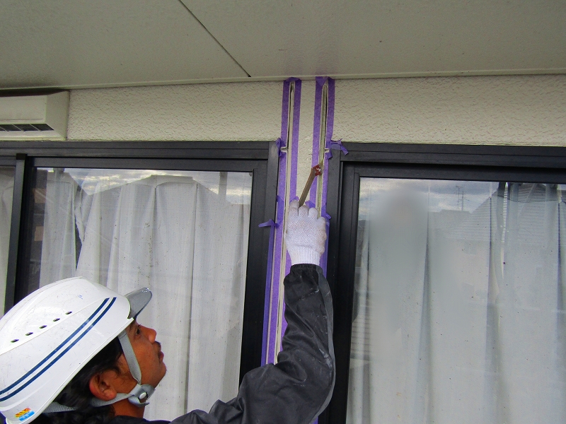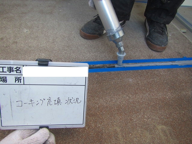 - コーキングの打ち替えをしています。古いコーキングを撤去し、新しく打ち替えます。