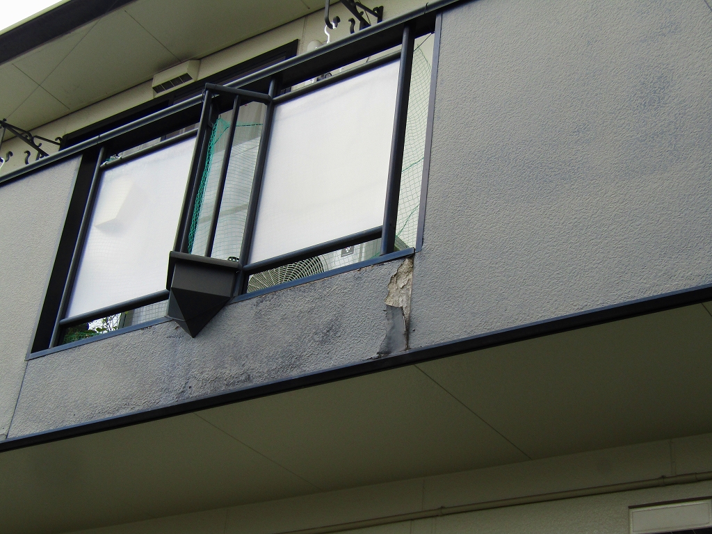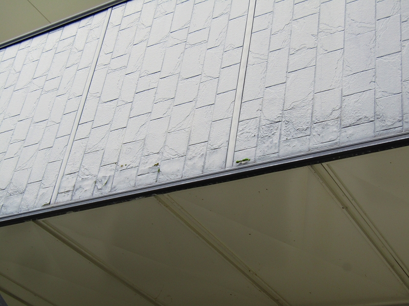 過去に屋根も外壁も塗装をされていますが、再塗装が必要な状態でした。南側の棟はバルコニーの外壁に水が回って塗装が剥がれてきていました。基材を傷めてしまう恐れがあるので、バルコニーの外壁はガルバリウム鋼板でカバーするカバー工法での修繕をご提案いたしました。