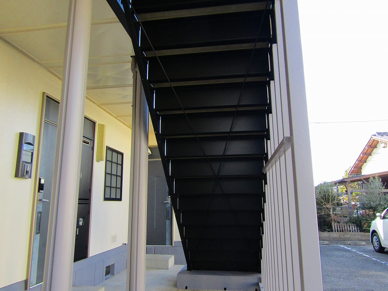- 階段裏や鉄骨は丁寧にケレンをして塗装することで、密着が良く、美しく仕上がっています。