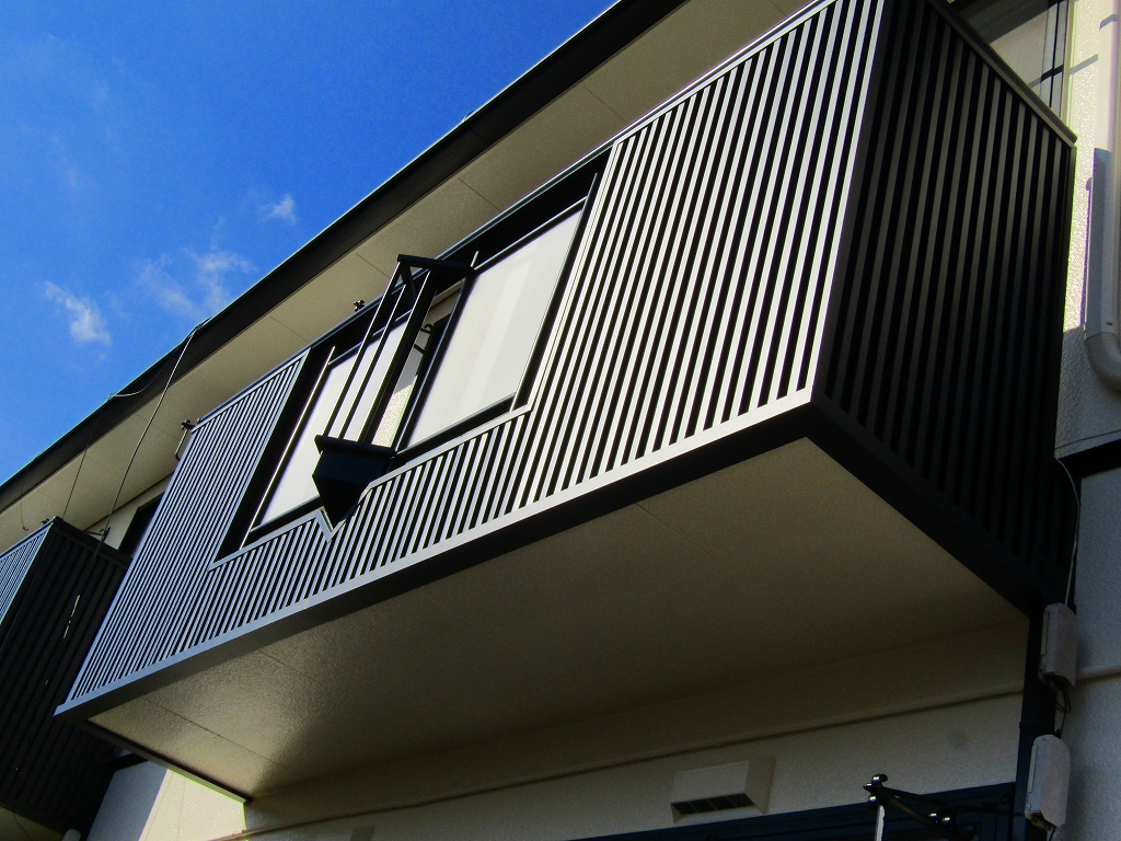 - バルコニーの外壁と共有廊下の外壁はガルバリウム鋼板でカバーしました。雨水が入る心配がありません。