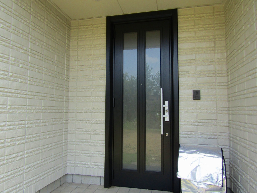 - 玄関ドアは新築時のような美しさになりました。ケレンをして塗装を繰り返すことでキレイに仕上がります。