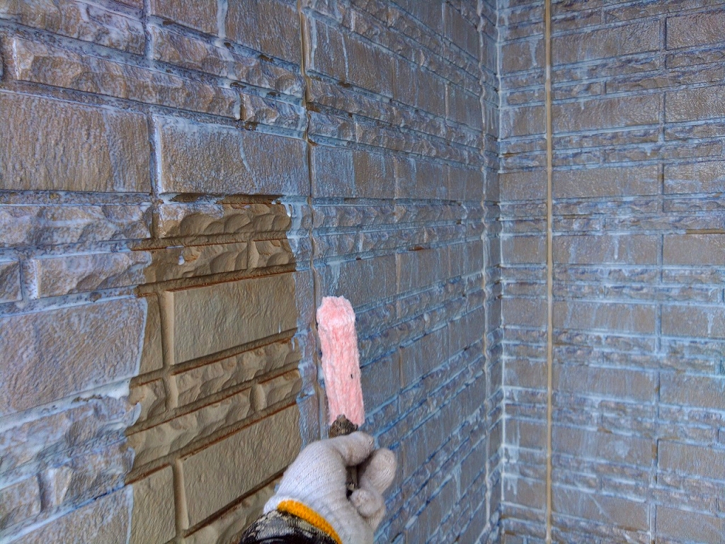 - 外壁の下塗りです。劣化が進んでいたので、ミラクシーラーエコを使用しました。