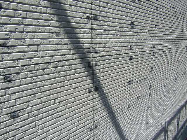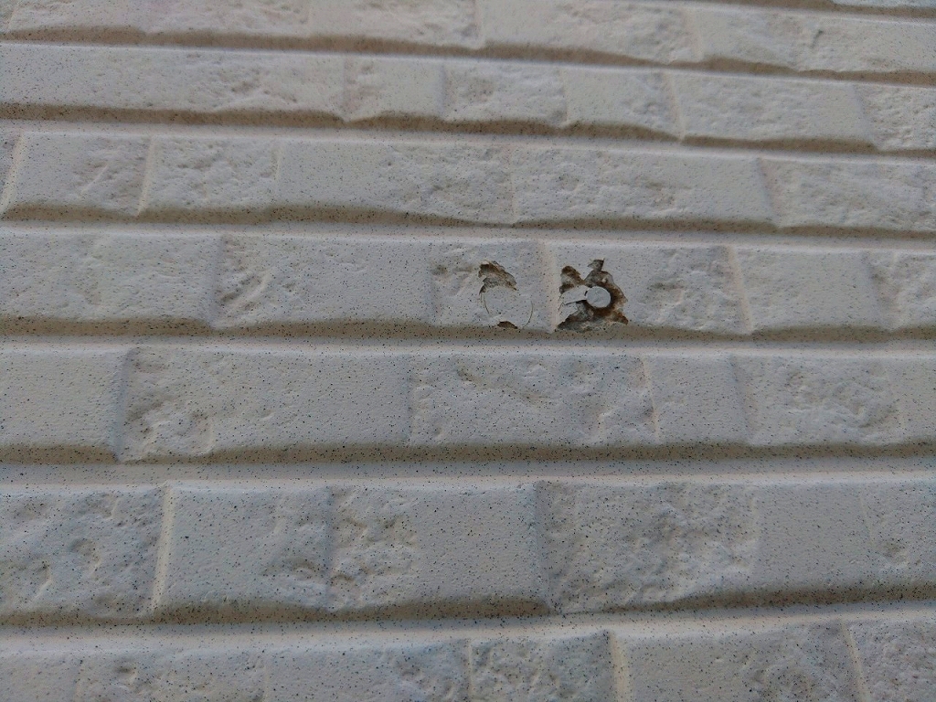 - サイディングビスの打ってある箇所がほとんど割れていました。割れた箇所は補修して塗装をします。