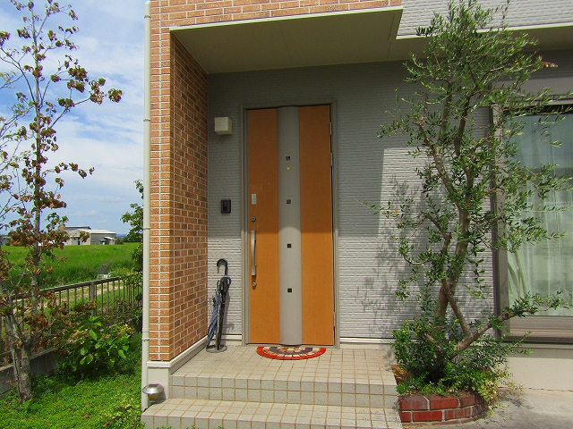 - 玄関まわりの塗装はグラデーションサイディングをクリアーで塗装し、意匠性を保っています。
