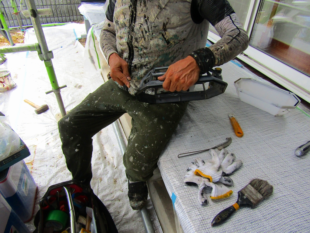 - 屋外ライトの塗装をします。最初に密着をよくするため、しっかりとケレンをします。