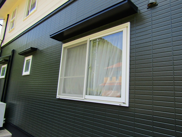 完成しました!外壁のモスグリーンが上品で美しいです。フッ素塗料なので汚れも落ちやすく美しさを保ちます。